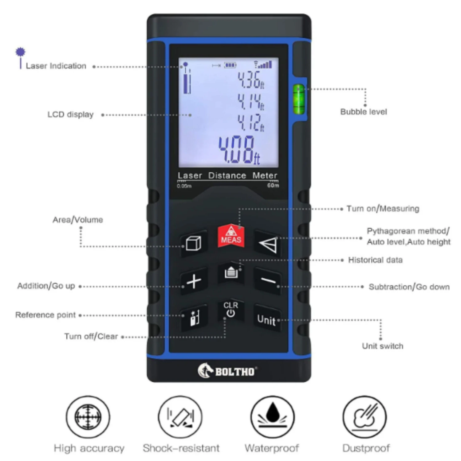 - Measurement unit: m/ft/inch/ft+